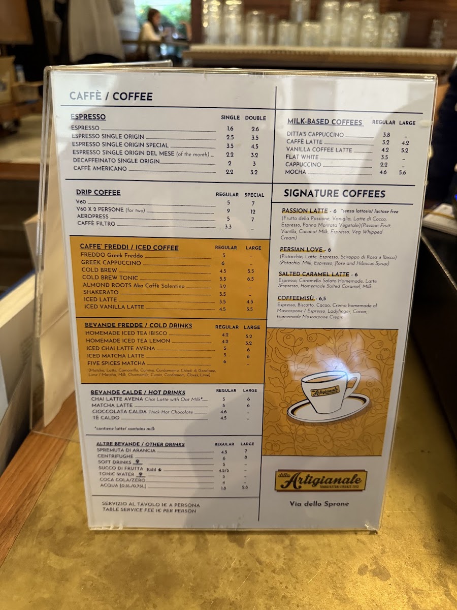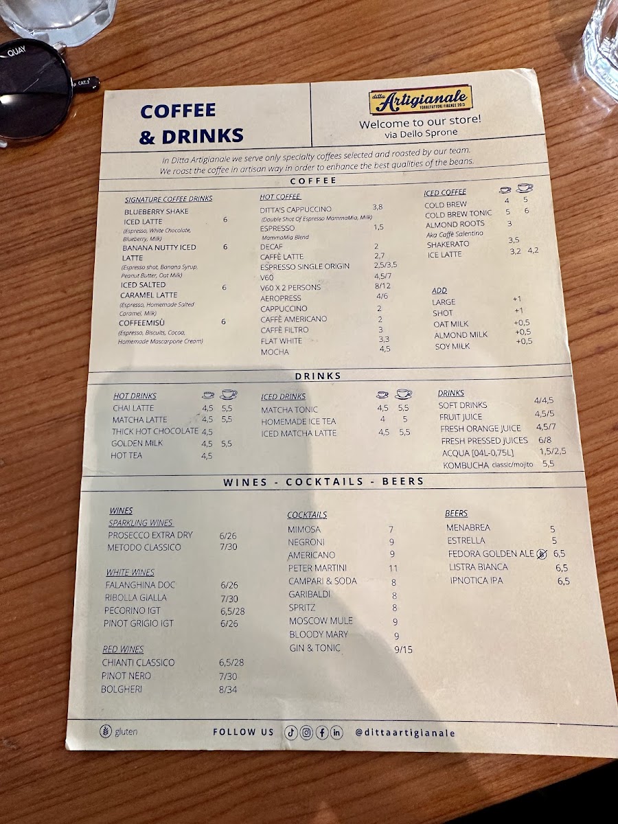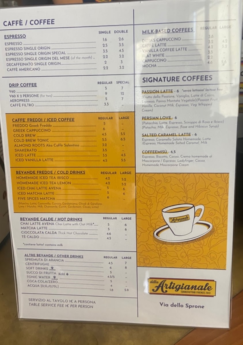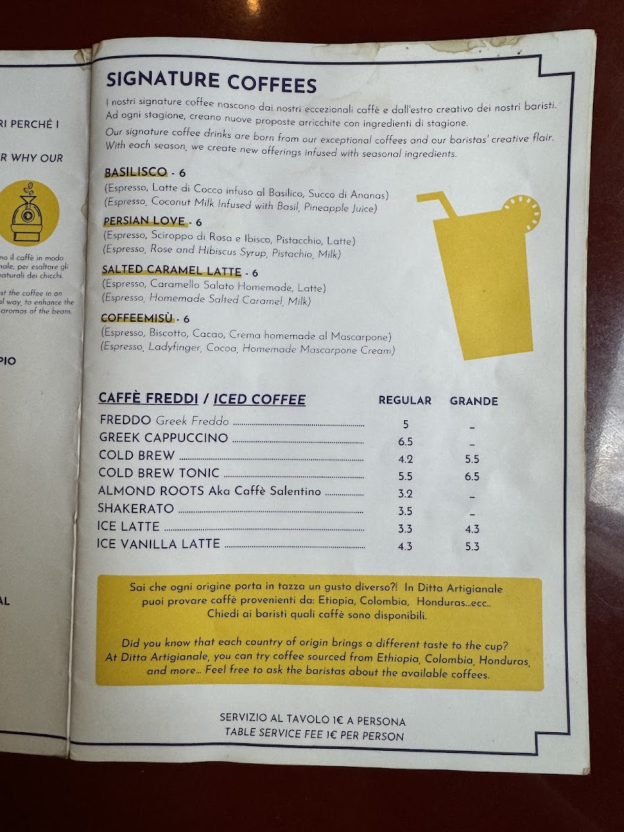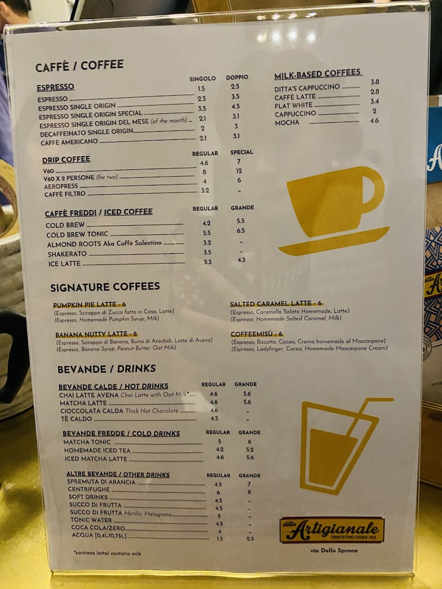 Ditta Artigianale Via dello Sprone Specialty Coffee Menu
